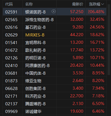 生物技术股多股大涨,银诺医药上市首日涨超206%。在上一交易日中,银诺医药-B暗盘高开,盘中一度涨超300%;最终收涨280.09%火星策略,报71港元。每手200股,不计手续费,一手赚10464港元。