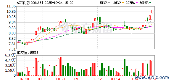 交易行情显示,10月21日—10月24日这4个交易日内,*ST荣控累计斩获三个涨停板。截至10月24日收盘,公司股价收于涨停价11元/股,总市值16.15亿元。