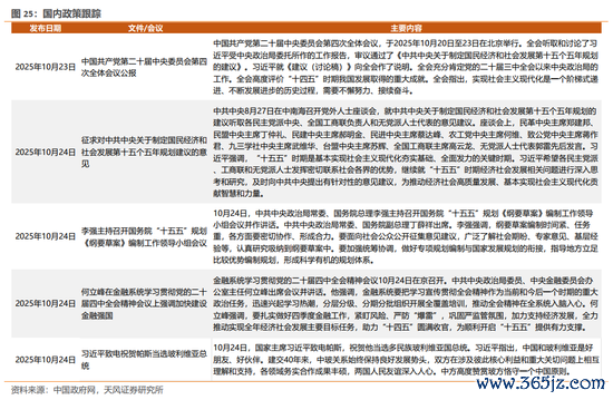 1)2025年Q3的GDP当季同比4.8%,预期4.76%,前值5.2%;分项来看,第一产业增速上升,第二、三产业增速下滑。一产、二产、三产25Q3当季同比增速为4.0%、4.2%、5.4%,环比变化0.2、-0.6、-0.3个百分点。2)9月3大经济数据中,工业增加值走强且高于WIND一致预期,社消、投资走弱,且低于预期值,其中9月工业生产同比回升,读数高于预期,环比回升;社消9月同比、环比均回落;整体投资9月继续回落。3)交运高频指标方面,地铁客运量指数回落。4)工业生产腾落指数回升,山东地炼、纯碱、唐山高炉、轮胎回升,甲醇回落。5)国内政策跟踪:中国共产党第二十届中央委员会第四次全体会议公报;李强主持召开国务院“十五五”规划《纲要草案》编制工作领导小组会议;何立峰在金融系统学习贯彻党的二十届四中全会精神会议上强调加快建设金融强国。