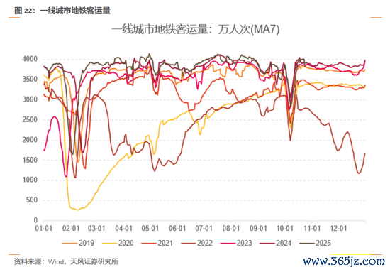 截至2025/10/24,一线城市地铁客运量(MA7)报3825万人次,较上周五的4026万人次回落。